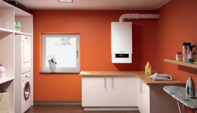 - Може да се инсталира навсякъде... В този случай няма да имате нужда от специално котелно помещение: устройството може да бъде инсталирано в кухнята, в килера или в мазето.