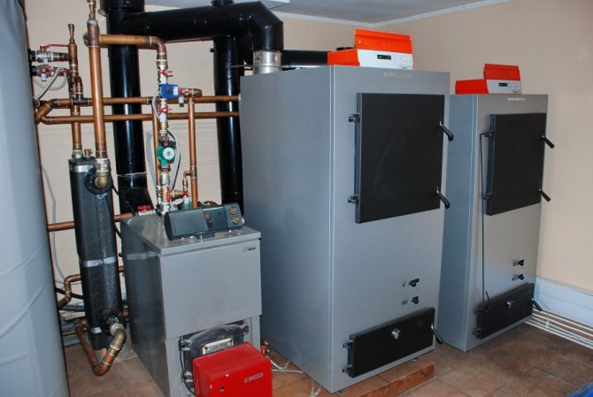 - Тип гориво. Дървесината се използва като гориво - дърва или пелети, както и въглища. Има смесени котли с няколко пещи.