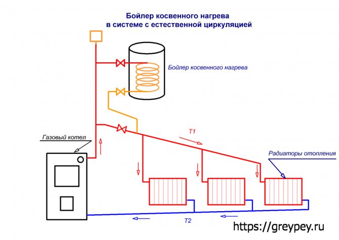 Едноконтурните газови котли с индиректен котел работят в две основни схеми за свързване. Принципът на действие на първия е както следва: