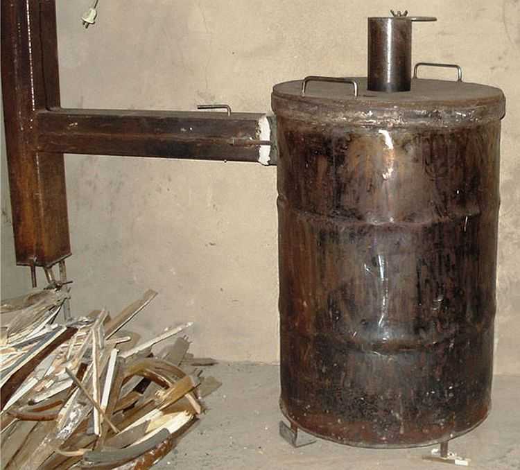- Цилиндрично тяло (обикновено цев, газова бутилка, тръба), в което се изгаря твърдо гориво. Тялото е снабдено с отвор за тръбата на комина;