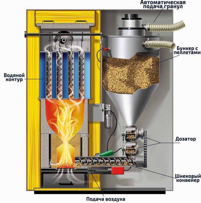 Устройството и принципът на действие на котлите на пелети