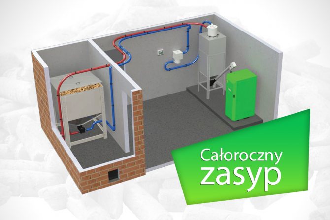 Поради впечатляващите си размери, котелът е инсталиран в специално каменно помещение, където трябва да се вземе място за съхранение на горивото. Правила за монтаж на пелетен котел: