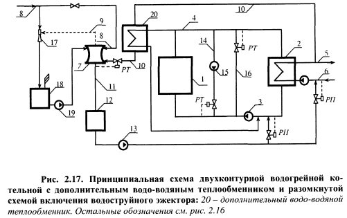 Следователно, като диаграма на котелно помещение за отопление на вода, в повечето случаи се използва затворена версия, състояща се от следните единици: