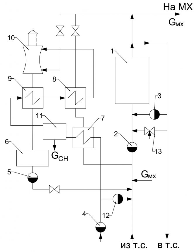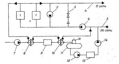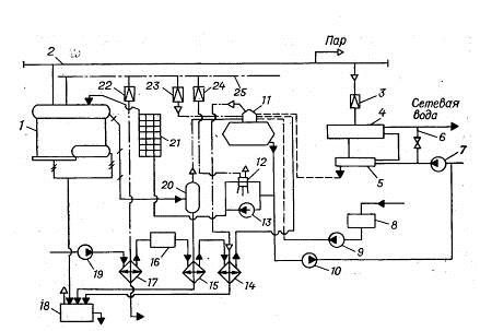 Съставът на елементите в топлинната схема на котелна централа с отворена верига за топлоснабдяване: