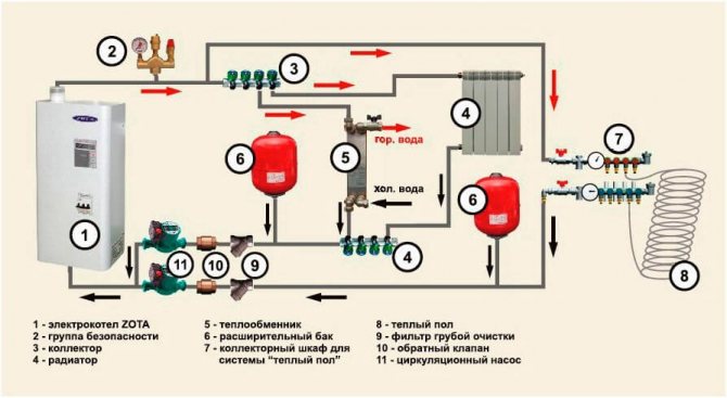 - Основният котел, който загрява вода за отоплителната система и отоплителния кръг на водата.