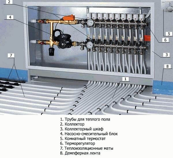 Циркулацията на отоплителната среда в затворения кръг на котелната централа се осъществява благодарение на циркулационната помпа (3), която е монтирана на водопроводната линия от котела (1), като правило, в горната си част, и въздушен отвор (4) също е разположен тук. Водата, загрята в котела, навлиза в тръбопровода за подаване на отопление и се насочва към батериите (9) през термостатичния вентил (8).