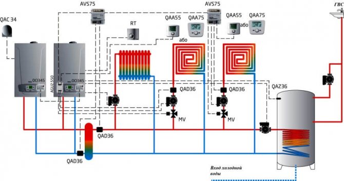 Използването на два газови блока за една система за топлоснабдяване е доста популярно решение сред собствениците на автономно отопление с топлинна мощност на системата над 50 kW.