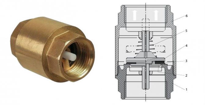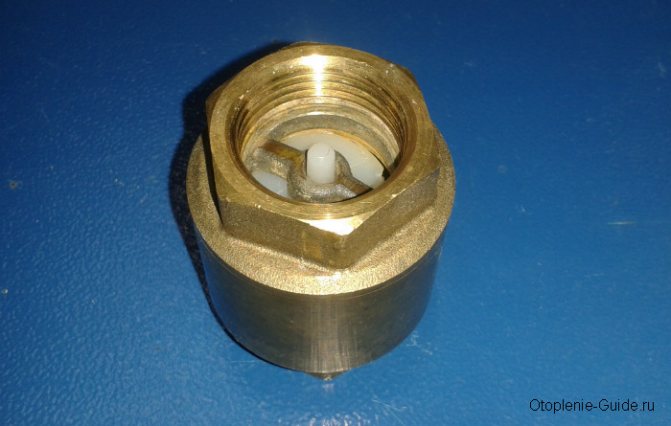 Забележка! Освен това има модели без пружина, при такива клапани, когато охлаждащата течност започне да се движи в обратна посока, амортисьорът пада под тежестта на собственото си тегло. Такива модели трябва да се монтират само хоризонтално с капака нагоре.
