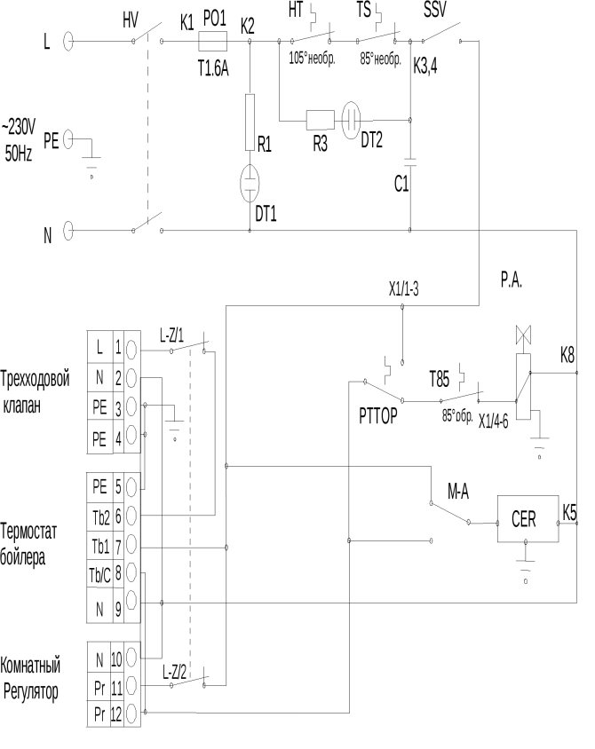 Котлите с мощност 6 и 9 kW могат да бъдат свързани към еднофазна мрежа