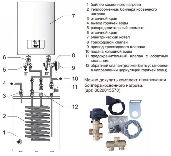 Оборудването е окачено на стената с винтове. Свържете тръбите към отоплителния тръбопровод. При допълнителна инсталация на котела се монтира трипътен клапан в точката на неговото свързване. Те са свързани към електрическа мрежа от 380 V. На входа е монтиран превключвател, който прекъсва подаването на ток. За захранването е положен отделен захранващ кабел. Всички точки на свързване са заземени.
