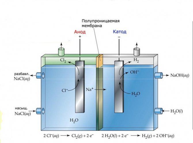 Клетките за електролиза на такива инсталации се състоят от два електрода, разделени от тънка мембрана, която позволява на продуктите на електролизата да преминат и отделя електродите един от друг.