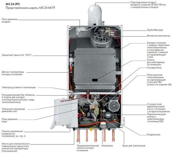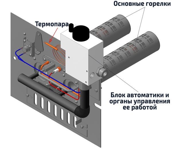 Основните елементи на нелетливите агрегати са основният (основен) топлообменник и газова горелка. Те осигуряват основната функция на котела.