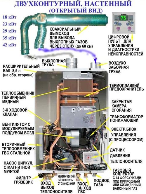 - двойна верига. Те изпълняват две функции - нагряване на охлаждащата течност и приготвяне на топла вода.