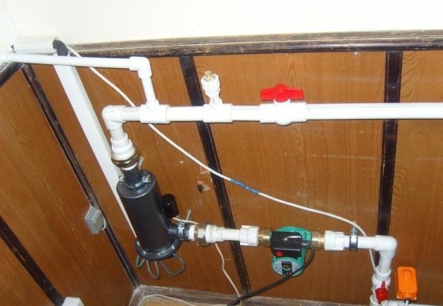 - Входът и изходът на EOU са монтирани във водонагревателната система чрез водопроводни съединители, адаптери.Входът на EOU е монтиран във връщащата линия, а изходът в захранващата линия на системата за отопление на водата. В отоплителната система за топла вода, в която котелът е вече инсталиран, EOU е монтиран паралелно.