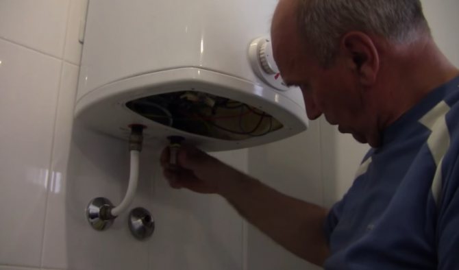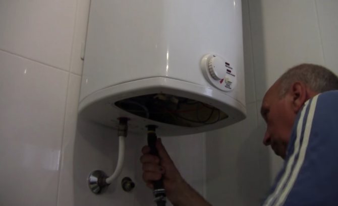 Демонтажът на бойлера се извършва само след като водата е напълно източена от резервоара. За да направите това, изключете маркуча за подаване на студена вода към котела и поставете на негово място тръба, през която ще излезе останалата течност.