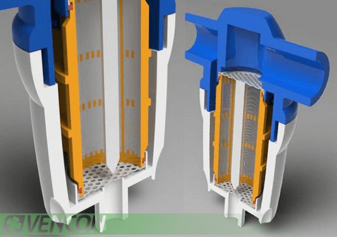 - Филтърът за котелно за дълбоко почистване се бори с пясък, отломки и частици ръжда. Те се монтират преди измервателния уред, на входа на водопровода. Обслужва се веднъж на три месеца.