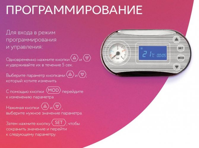 Съвет! Подробни инструкции, които имат русифициран раздел с висококачествен превод, ще ви помогнат да се справите с всички нюанси при настройката на котела.