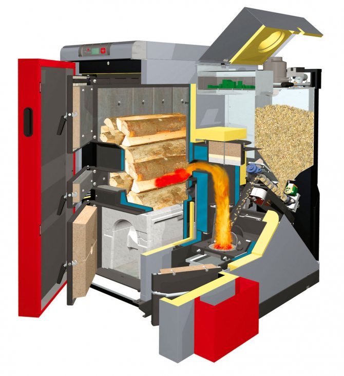 Най-интересните за отоплителните котли са универсалните газово-дървесни пелети, които имат способността да работят самостоятелно без човешка намеса за дълго време. Такъв нагревател, вместо дърва или газ, може да работи със специални пелети. Такъв комбиниран вариант елиминира необходимостта от запас от дърва за огрев, тъй като пелетите обикновено са винаги на разположение за продажба. Като алтернатива комбинираният котел все още е удобен.