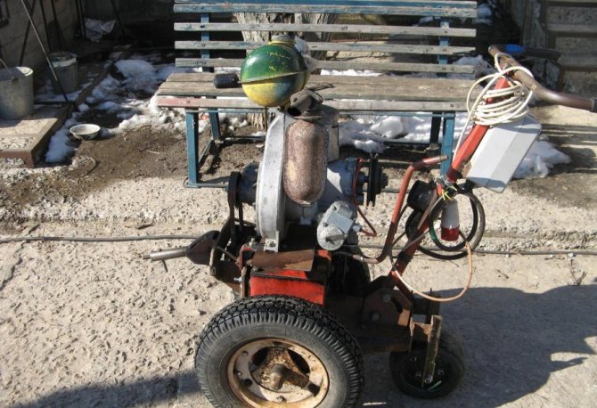 След всички тези манипулации към ролката на генератора е прикрепена кофа или друг контейнер с готови отвори за болтове.