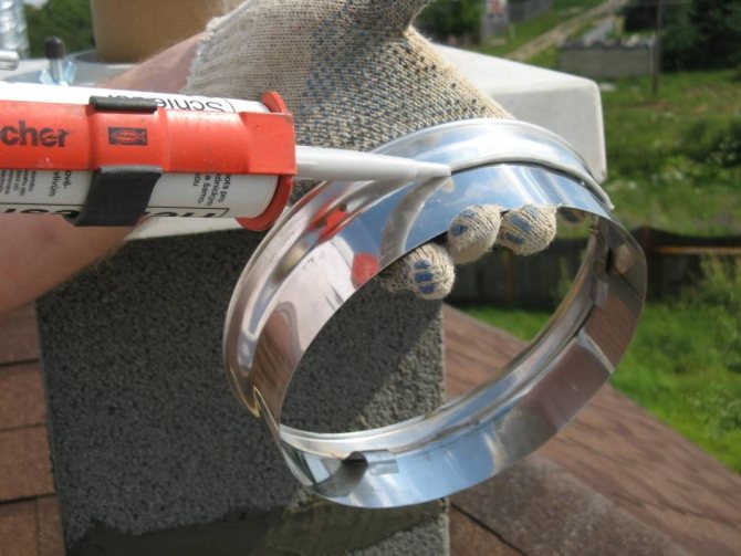 - уплътняване на кръстовището на покривните материали с комина, за да се предотврати проникването на вода;