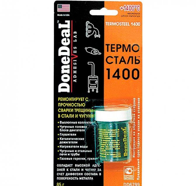 - Момент Herment Висока температура. Издържа до +315 градуса, може да се използва за ремонт на автомобили, отоплителни системи, перфектно запълва канали и пукнатини, подходящ е за метал, дърво, камък, стъкло, пластмаса.