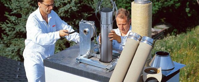 - Ролковият механизъм е фиксиран към отворите на кондензатния колектор. Елементът в втулката е носеща конструкция, а първият се спуска в комина на дълбочина 30 см. Керамиката е тежка. За безопасно спускане е оптимално да използвате лебедка.