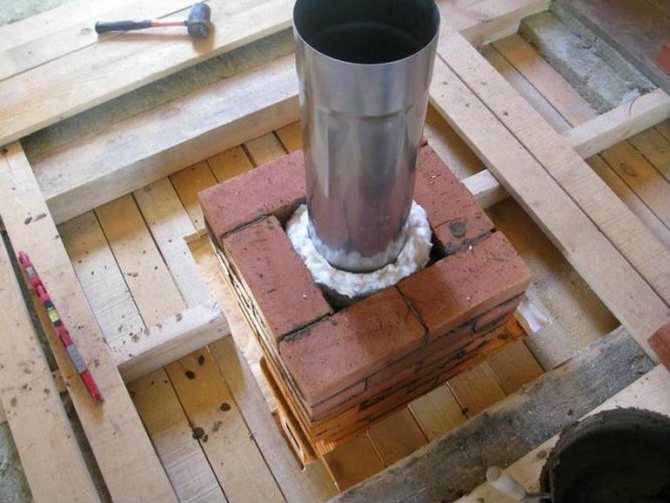 За да се монтира главата, върху повърхността на комина е изградена твърда втулка и около нея е монтирана покривна плоча. В близост до тръбата е прикрепена яка, за да се предотврати навлизането на кондензат в тухлената шахта. Частта на ръкава, стърчаща над покрива на къщата, е изолирана с изолация. Във височина тръбата трябва да излиза извън нивото на билото.