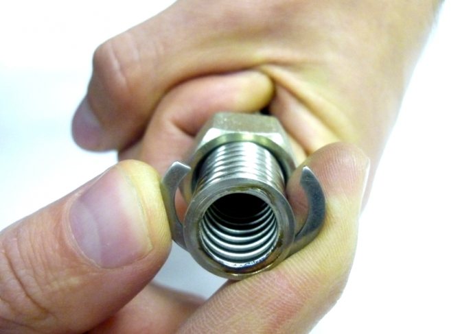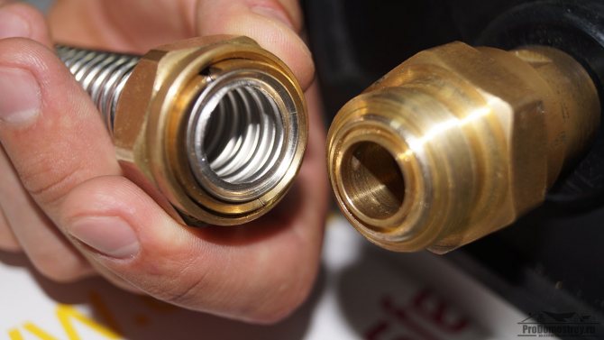 - Свързване на фитинги към тръби и смесители. В този момент се уверете, че съединителната гайка отстрани на тръбопроводната връзка не е затегната.