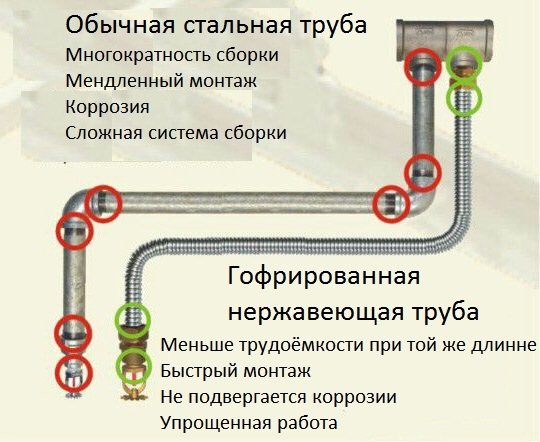 - Високата степен на топлопреминаване, характерна за гофрирана неръждаема тръба, ще бъде плюс за отопление, но на местата за топлоснабдяване ще се изисква монтаж на топлоизолация, за да се спести топлинна енергия.