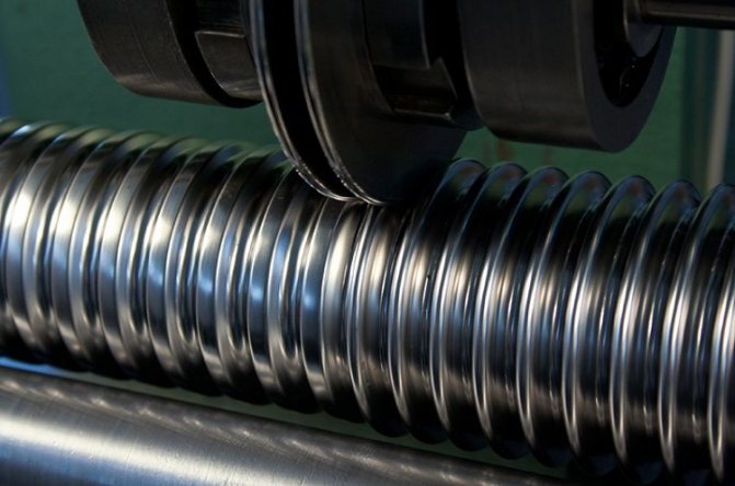 - преобразуване на получената гладка стоманена тръба в гофрирана, за което тя се прекарва през система от шахти с различен диаметър;