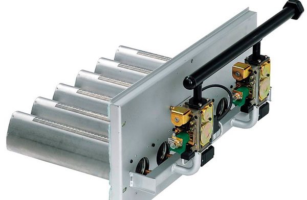 Снимка 1. Атмосферна газова горелка с кухи хоризонтални тръби и отвори, подходяща за стенни и подови котли.