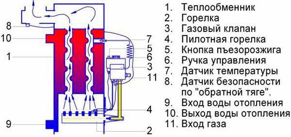 - Не най-високата ефективност - трябва да се примирите с този недостатък. По-модерните газови котли със затворени горелки са по-икономични и ефективни;