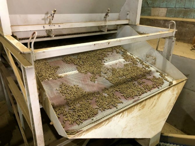 - Охлаждане на готовите цилиндрични гранули в охладител (температура 70-90 ° C).