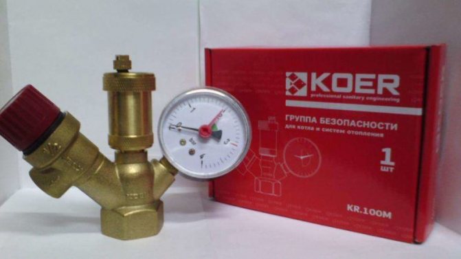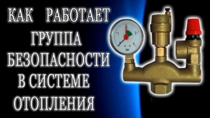Групата за сигурност може да бъде представена под собствена форма. Основният елемент в него е авариен клапан, който облекчава налягането. В някои случаи е възможно да се монтира само един предпазен клапан върху тройника вместо цялата група за безопасност.