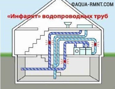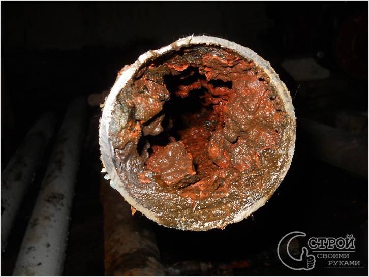 При липса на ремонт на комунални услуги за дълго време, мръсотия (ръжда, сол) се утаява върху вътрешните стени на тръбите, намалявайки техния диаметър