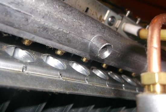 Катализатор на неизправност: запушени дюзи. Достатъчно е да почистите изходите на горелката и запалителя и колоната ще продължи да работи нормално. Не развийте струите по време на поддръжката. Почистването се извършва със специално шило с пръчка, идентична по размер на изхода.