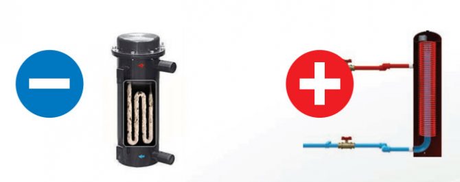 Те тежат и 2 пъти повече от отоплителните котли, имат големи обемисти размери и цялото електронно пълнене е навън. Докато е в отоплителни котли, той е скрит в самия котел.И тук има допълнителна кутия, която понякога няма къде да се постави, особено когато става въпрос за много малко помещение за котелно помещение.