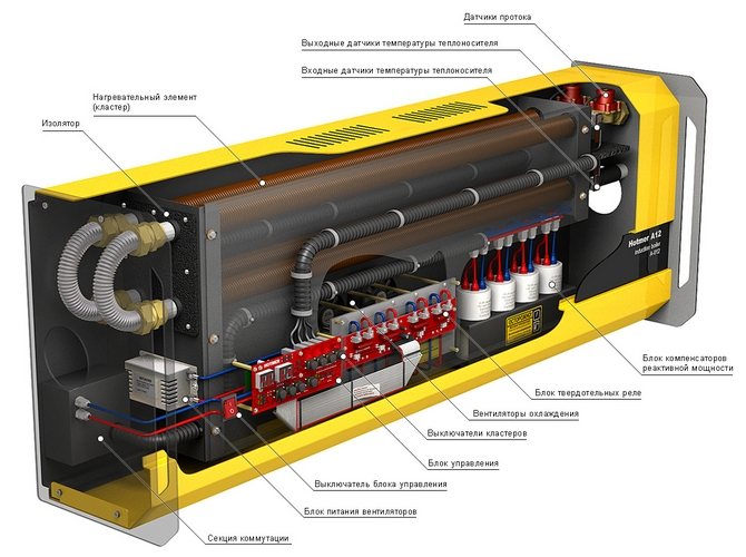 Индукционният котел се състои от основните елементи:
