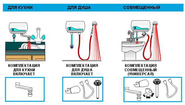 Кранове и дифузори с тесни отвори са монтирани с бойлер. Конвенционалните устройства също могат да бъдат свързани, но в този случай водата бързо ще премине през бойлера, така че няма да може да се загрее достатъчно. Отнемането на настройките ще отнеме много време, но ще бъде много трудно да се постигне желаната температура на водата. Ако в доставката на бойлера не е включен специален дифузор, тогава при закупуването му трябва да се консултирате с продавача относно избора на подходящите части за най-надеждната опаковка.