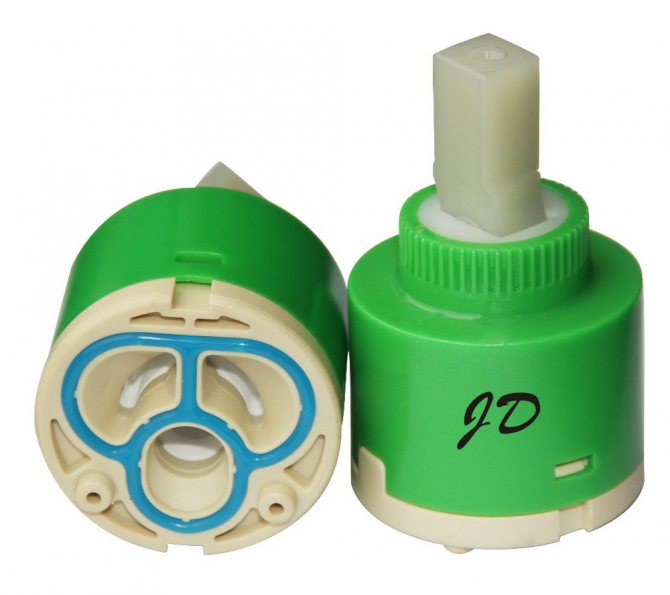 Друг вариант на патрона е керамиката. Състои се от две шайби (плочи), които са направени от алуминиев оксид. Между тези плочи не трябва да прониква вода. Такива касети могат да служат без прекъсване около 10 години.