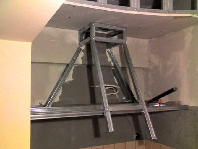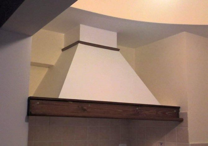 - ако интериорът на кухнята е проектиран в стил "таванско помещение", изпъкналият структурен елемент може да бъде украсен с тухлени плочки от бетон.