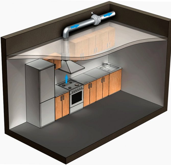 - Същността на проветряването е да се смесват замърсителите в кухнята с чист въздух възможно най-скоро. След това те трябва да преминат през процедурата за изтегляне и напълно да напуснат стаята, използвайки качулката.