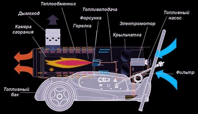 Може да има затворена или отворена горивна камера. Дизеловите топлинни пистолети с отворена камера се използват само в добре проветриви помещения. Топлинните пистолети с непряко нагряване ви позволяват да отстранявате продуктите от горенето от стаята с помощта на гофрирана тръба.