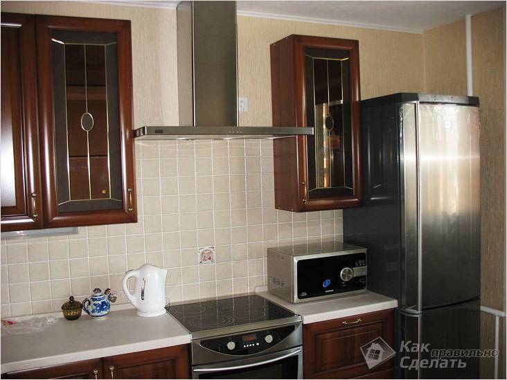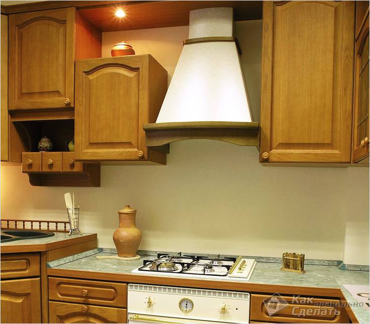 Някои хора решават да завинтват качулката към стенния шкаф. В този случай, съгласно същия принцип, ние маркираме на желаната височина къде да закрепим оборудването и да го закрепим с самонарезни винтове върху дърво.