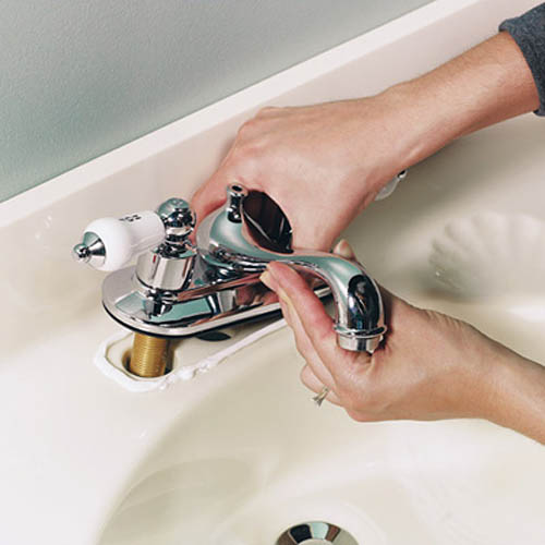 - Кранът трябва да бъде фиксиран върху специален отвор в рафта (пиедестала) на мивката. Фиксира се със затягаща гайка. В този случай трябва да се постави гумено уплътнение между него и мивката (от двете страни на монтажния отвор).