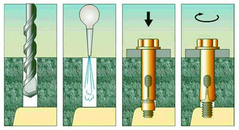 Подготвителният етап завършва с пробиване на отвори и инсталиране на дюбели в тях.