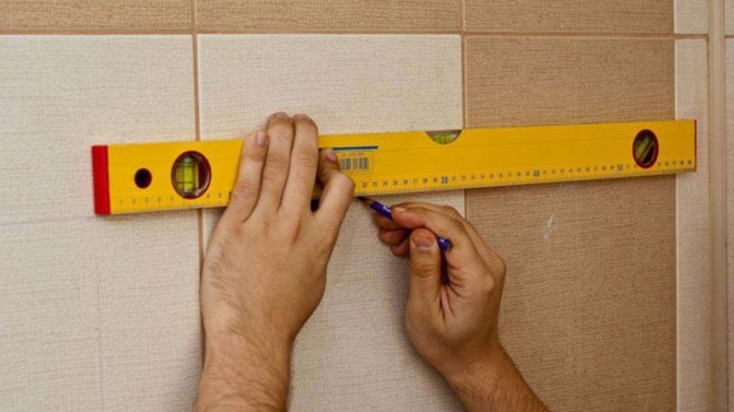 - Вземете ниво и молив в ръцете си и маркирайте местоположението на канала.