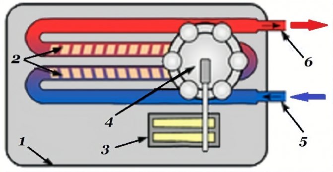 Ако се използва вода, загрята от устройството, крановете, водещи до него, се отварят и вентилът, монтиран пред тройника, вграден в тръбопровода за топла вода, се затваря.