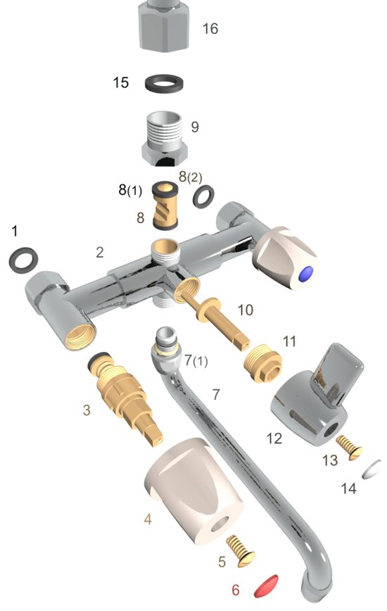 Нека да разгледаме от какво се състои кран за баня, монтиран на стена.