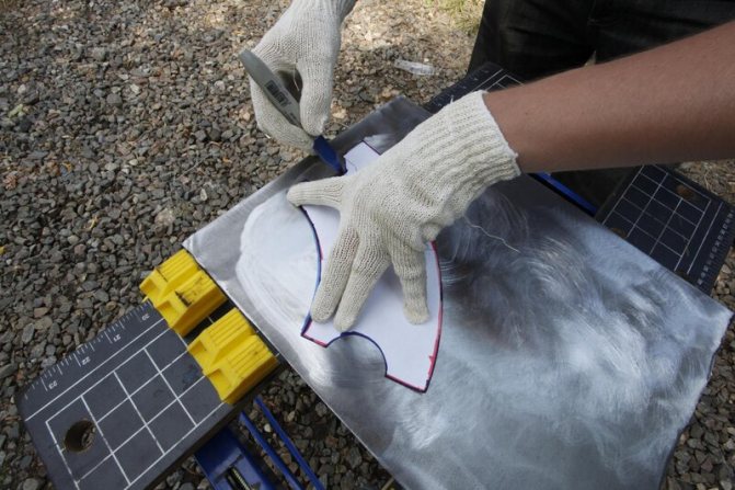 На първо място, направете изолационен корпус. За да направите това, вземете поцинкована ламарина или тънък лист алуминий. Изрежете два правоъгълника. Не забравяйте, че е необходимо да огънете листа върху дорник с по-голям диаметър.Можете също така да огънете материала върху напречната греда.